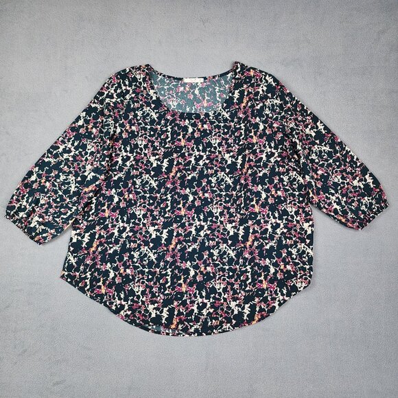 Le Lis Blouse Women's Large Colorful Pullover Top Abstract Scoop Neck Preppy USA