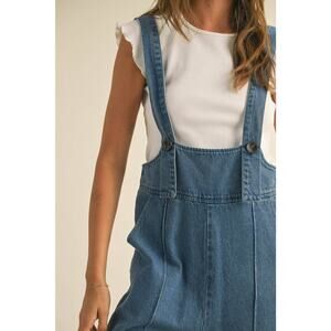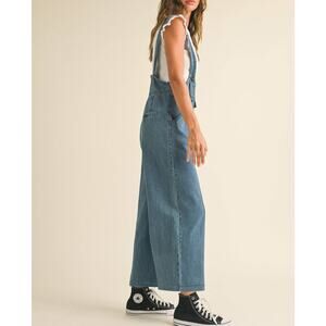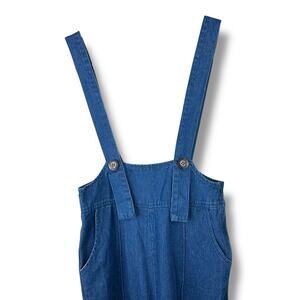 Le Lis Boutique Bib Front Strapaed Top Denim Frayed Overalls Jumpsuit with Pockets, adjustable straps, and Frayed Hem. Note: Stock photo is the same item, however does not have frayed hem. Item being sold has frayed hem. See photos.