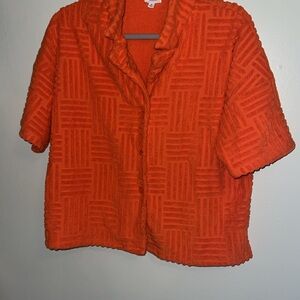 Le Lis Bright Orange Terry Cloth Knit Button-Front Top