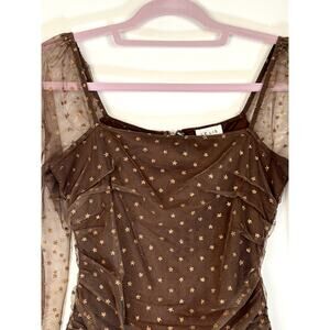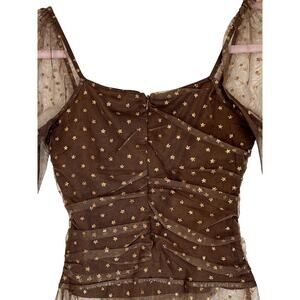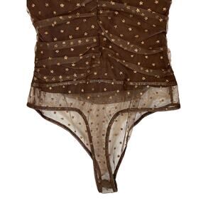 Le Lis Collection Brown w/ Gold Glitter Stars Tulle One Piece Body Suit Size M