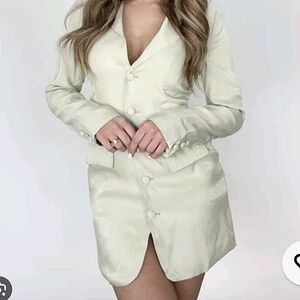 Stylish light green blazer dress with button details. Perfect for a sophisticated look.