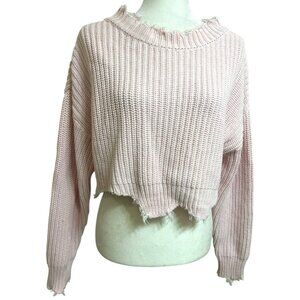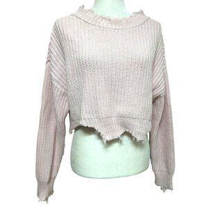 Le Lis Collection Oversized Distressed Light Pink Cropped Sweater Size Small
