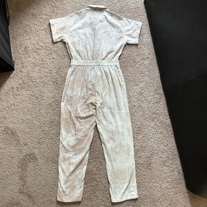Le Lis Ribbed Tie Dye Cream Cotton Jumpsuit Button Front Stretch Waist Size M