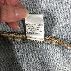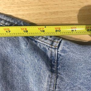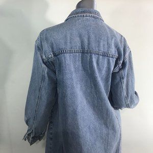 Le Lis Collection Women's Medium Long Line Blue Jean Denim Jacket Button Front Pockets. 21" x 39"