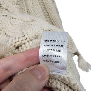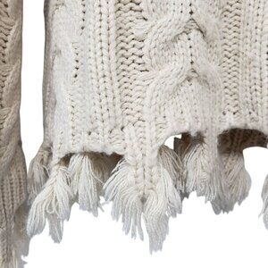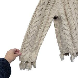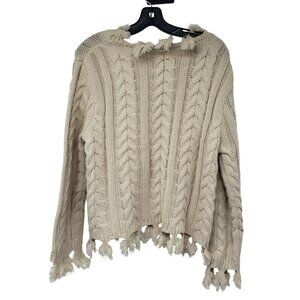 Le Lis Cream Cable Knit Cropped Sweater Fringe Distressed Frayed Tan Neutral