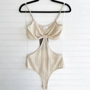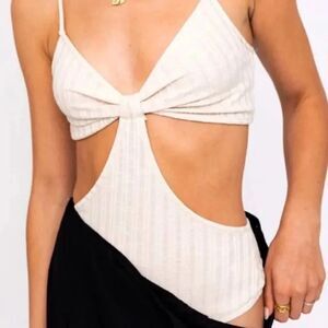 Le Lis Cream Knit Knot Front Bodysuit