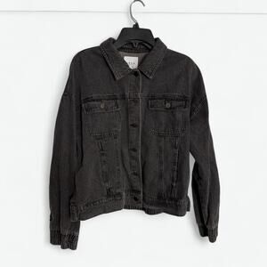 Features: Elasticized cuffs and hem; boxy/cropped trucker silhouette; unlined