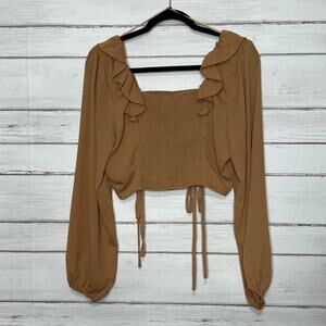 Le Lis Long Sleeve Ruffle Crop Top Tan Size Large