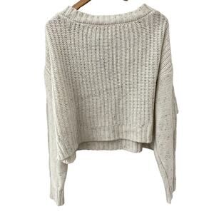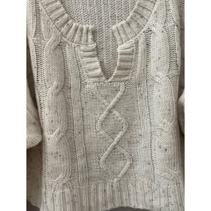 Le Lis Oversized Wool-Blend Cable Knit Cropped V-Neck Cream Sweater Size Large