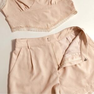 Le Lis Peach Lace Cami Cropped Top and Pleated Shorts Set Size Small Dreamy