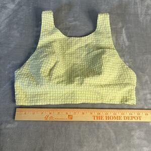 Keywords: lime green crop top, gingham check top, sleeveless top, racerback crop top, smocked waist top, seersucker top, summer top, festival top, beach top, casual crop top, women's crop top, LE LIS COLLECTION top, size M crop top, lightweight top