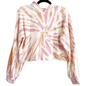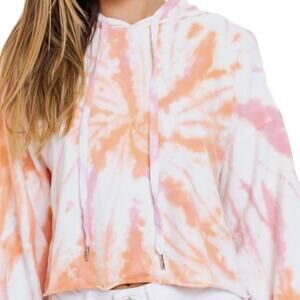 Le Lis Pink Orange Tie Dye Cutoff Cropped Hoodie Long Sleeve Hooded Crop Top