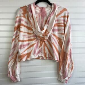 NWOT Le Lis Pink Orange Tie Dye Cutoff Cropped Hoodie Long Sleeve Hooded Crop Top