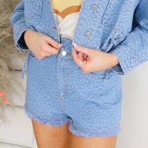 Rock these adorable Le Lis denim jean shorts! These shorts feature a high rise waist and a trendy cutoff raw hem with ruffle trim. The distressed texture adds a touch of edginess to the light wash denim blue. Perfect for casual outings or dressing up with your favorite top!