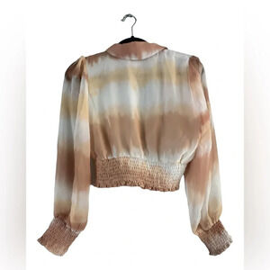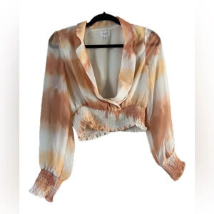 Le Lis Sheer Cropped Watercolor Long Sleeve Blouse Size Small