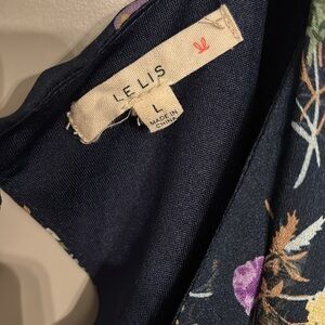 Le Lis Size LG Romper Tie Front Elastic Waist Blue floral