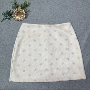 Le Lis Faux Suede Star Print Mini Skirt. Super soft and stretchy with a thicker material. Zipper in back. Never worn. Size small.