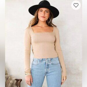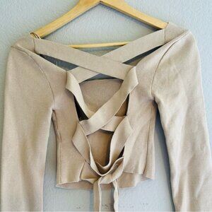 Le Lis Tan Back Lace-Up Fitted Sweater Size Small