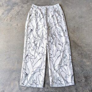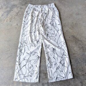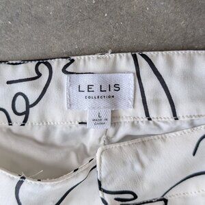 Le Lis White Black Abstract Lines Pattern Wide Leg Trousers Pants large