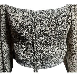 Le Lis Womens Animal Print Sheer Balloon Sleeve Smocked Tie Crop Top Size Small