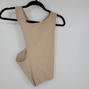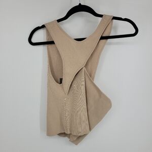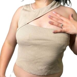 Le Lis womens ribbed knit asymmetrical cutout fitted light tan crop top size L