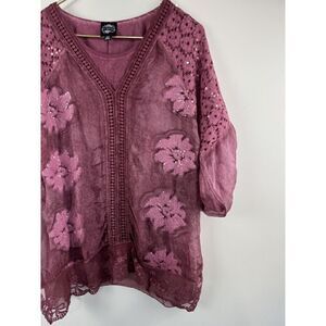 Le Marais Paris SILK Embroidered Pink Peasant Blouse Size Small
