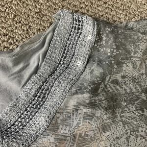 Le Marais Womens Blouse Size Small Gray Floral Sheer Silk Dolman Sleeves Lined
