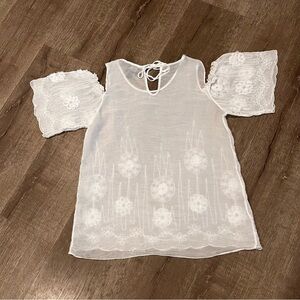 Le Marias Paris Women’s White Semi Sheer Feminine Short Sleeve Silk Top …