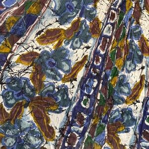 Elegant women's skirt featuring a vibrant floral pattern in blue and brown. Perfect for adding a touch of color to your wardrobe.