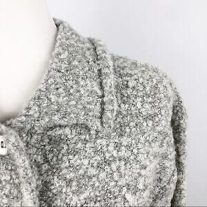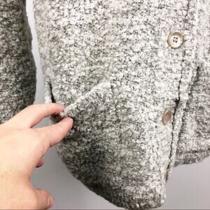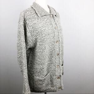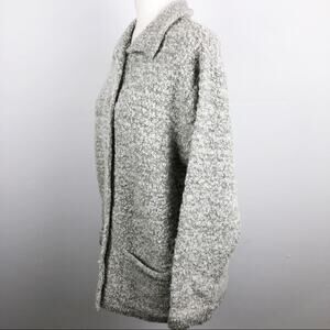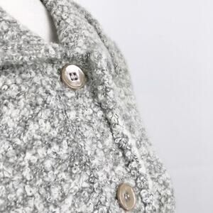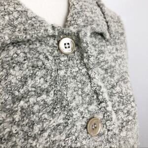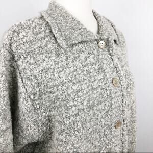Gray wool blend button up jacket with 2 front pockets by Le Moda Size Large made from 35% wool 50% acrylic 15% poly- Like popcorn material.