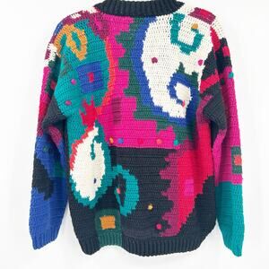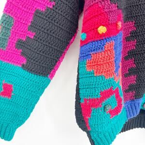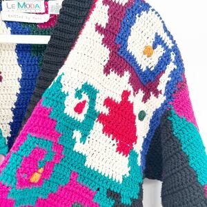 Le Moda Knitwear Womens VTG 90s Artsy Colorful Hand Knit Cardigan Sweater M