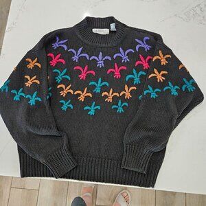Le Moda Small Vintage Fleur-de-lis Y2K Hand Loomed & Embroidered Black Sweater