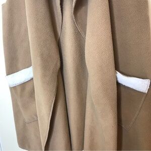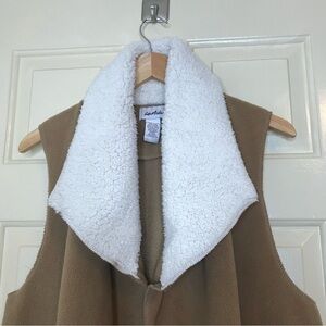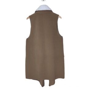 Le Moda Sz ?? Open Front Fleece Fly Away Vest Faux Fur Collar Pockets Brown