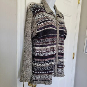 Le Moda Vintage Full Zip Collared Faire Isle Nordic Marled Wool Blend Sweater M