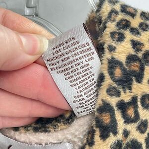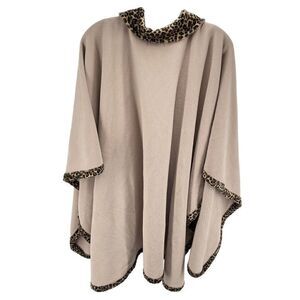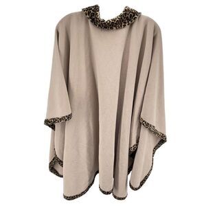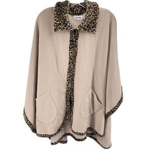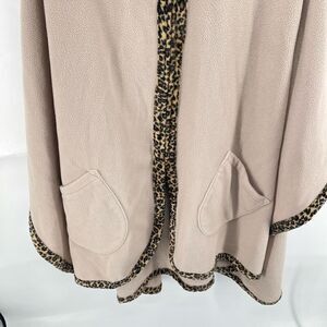 Le Moda Womens Wrap blanket Sweater Leopard Trim Full Zip Pocket Beige Tan One S