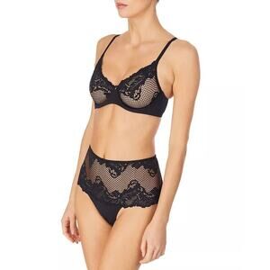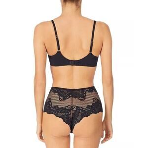 Le Mystere Lace Allure Unlined Underwire Demi Bra Adjustable Black Size 34DD NWT