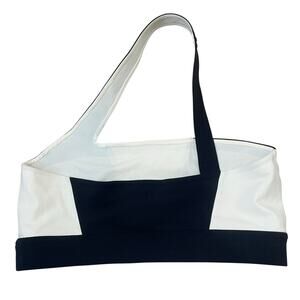 Le ORE Colorblock One Shoulder Crop Top Sports Bra in White Black Size M