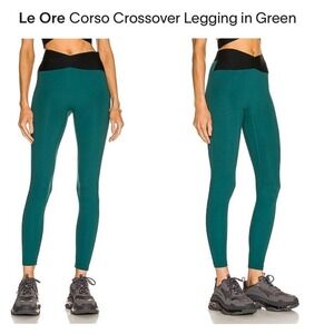 Keywords: Le Ore, crossover leggings, high waist leggings, yoga pants, athletic leggings, green leggings, workout leggings, activewear, exercise pants, women's leggings, slim fit leggings, comfortable leggings, stylish leggings, size XS