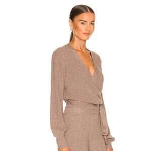 Le Ore Revolve Lodi Pointelle Knit Wrap Cardigan Sweater Top Size Medium In Walnut