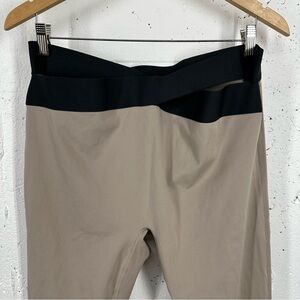 Le Ore Bandier Corso Crossover Warm Stone Tan High Waisted Leggings in good preowned condition. Normal wear some of the inside logo is rubbing off.