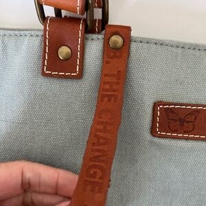 Le Papillon " Be The Change" Large Grey Canvas Tote