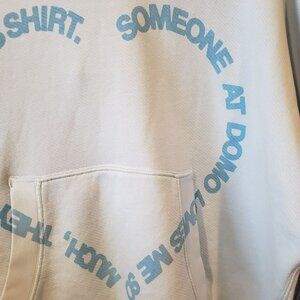 Styled after the HK VERSAILLES HEARTS HOODIE , this pullovers oversized heart graphic reads "SOMEONE AT DOMO LOVES ME SO MUCH, THEY GOT ME THIS SHIRT." Light blue, amazing heavy weight fabric. Excellent condition!