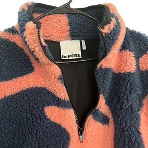 Le Pere Woods Quarter Zip Sherpa Pullover, Color Redbud Pink & Navy