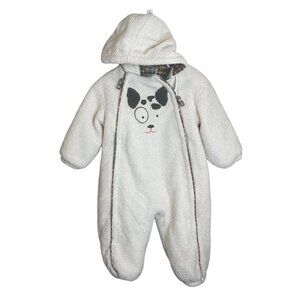 Le Petit Rothschild Plush Snowsuit Soft Hood Baby Boy’s Size 24 Months Cream Dog