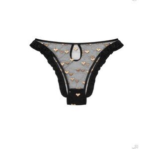Le Petit Trou Ruffled Triangle Silk Bra (S) Black with Gold Hearts & Panty (M)