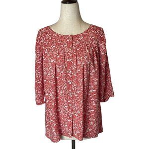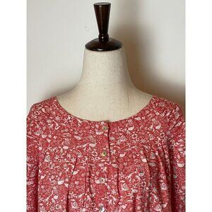 This pleated front blouse is in excellent condition. It has an alllover sea creature prints like starfish, whale, fish and more in red & white colors. It has a pleated front with a Button-down closure. It has scoop Neckline with straight hemline. It is crafted from 100% Viscose.