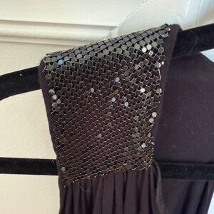 Le ROK Top, black, draped front, back is also draped, sequins shoulders and top of back, size S, excellent condition, so stylish!