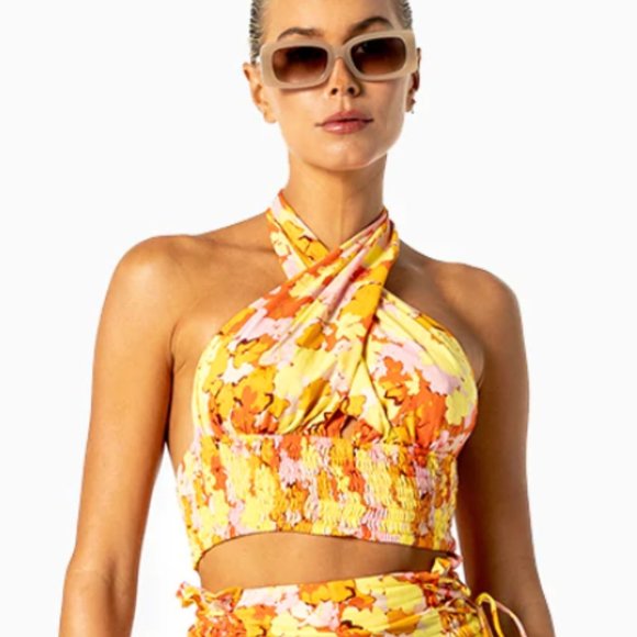 **NEW/NEVER WORN** Retreat to the coastline in our Freya Halter Top. This holiday staple was imagined for leisurely poolside lounging and sun-drenched days spent by the sea. Featuring a shirred elastic waistband and an adjustable halter top that can be styled however you desire. Whether it is worn crossed at the front, or fitted as a halter, be sure to embrace the unmistaken luxury of the Riviera in Freya. Pair her with the Freya Pants.