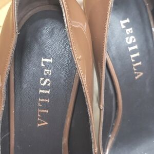 Le Silla platform pumps. Shiny Mocha brown patent with a sexy gold mirror chrome accent on the bottom. Looking for pumps that will turn heads! These are the ones. Approx 6 inch heel. 2" and a half platform.
