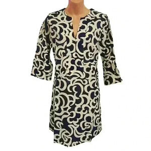 Le Sirenuse by J.Crew 100% Cotton 3/4 Sleeve V-Neck Patterned Dress $150